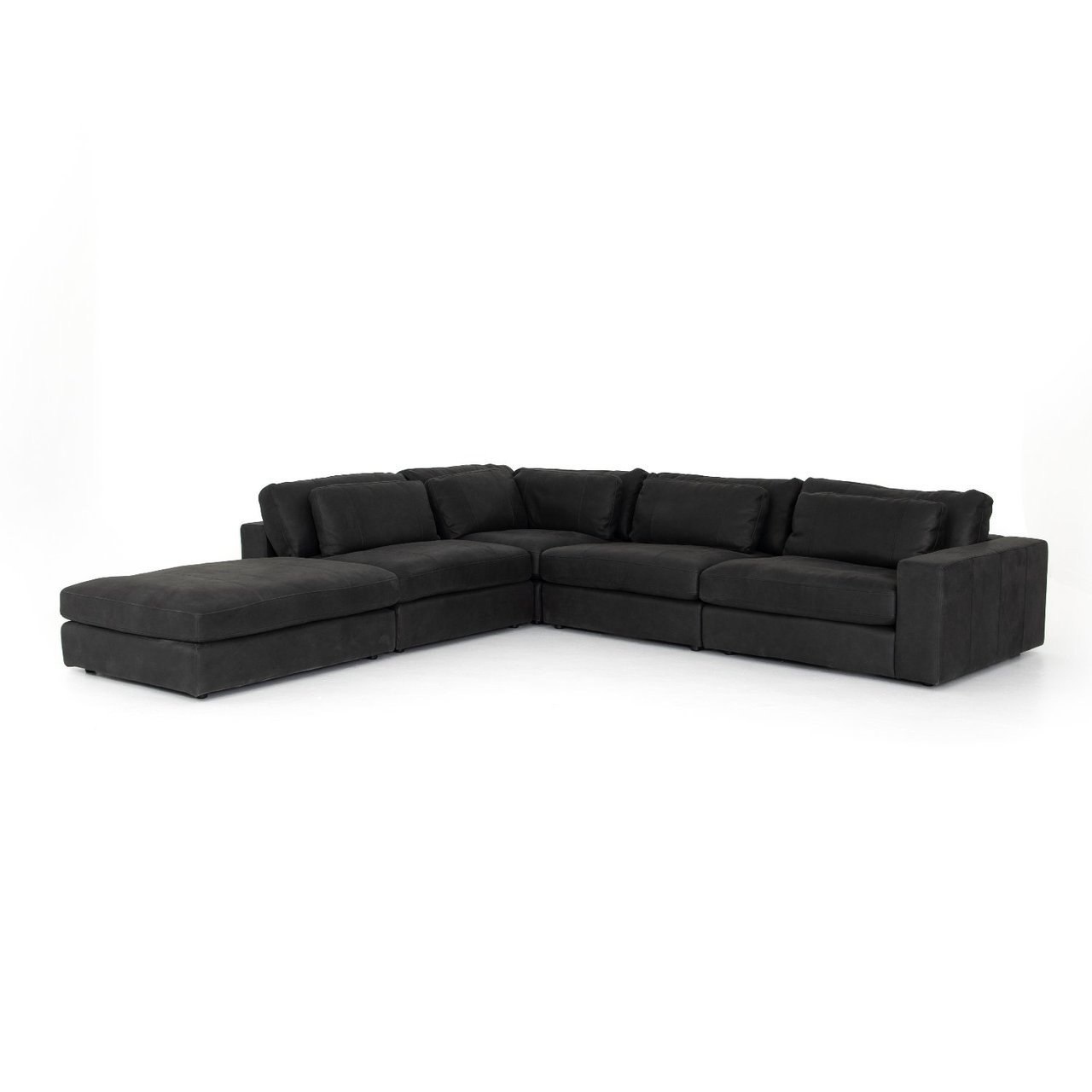 Bloor Black Leather 5 Piece Left Arm Sectional Sofa