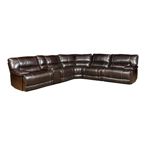 Modern Brown Faux Leather Upholstered 6 Piece Sectional Recliner Sofa