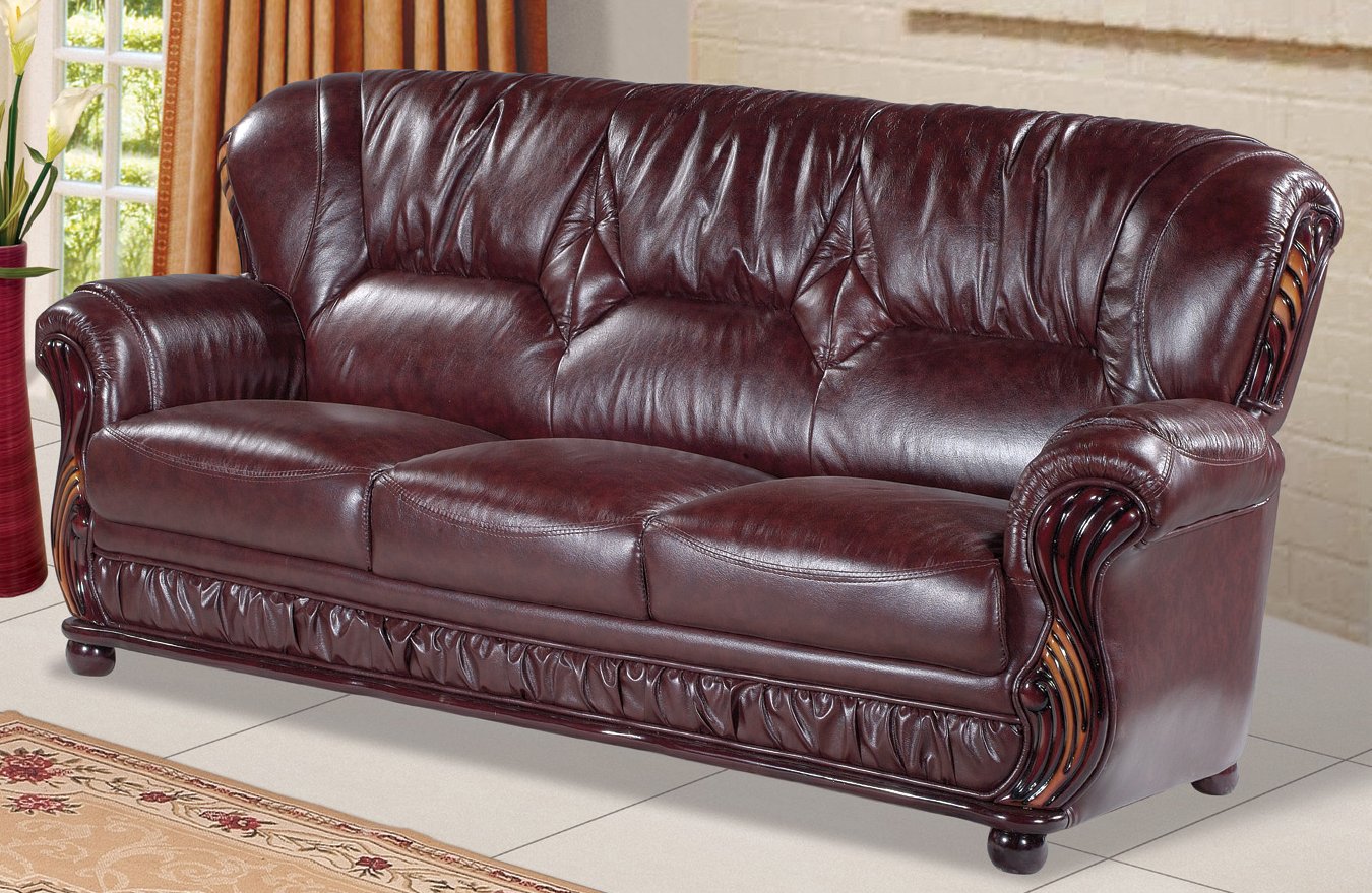 Traditional Meridian Brown Furniture Bonded Leather Living Room Sofa Set 3pc Rich Cherry Wood Accents