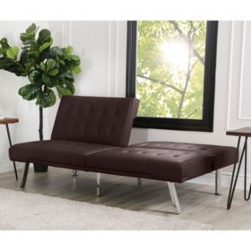Leather futon sofa sleeper. Dhp emily convertible futon and sofa sleeper modern style with tufted cushion arm rests and chrome legs quickly converts into a bed blue linen. Free shipping by amazon. Need to catch a quick nap at the office.