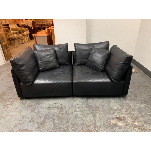 Vintage Black Leather Modular Sofa