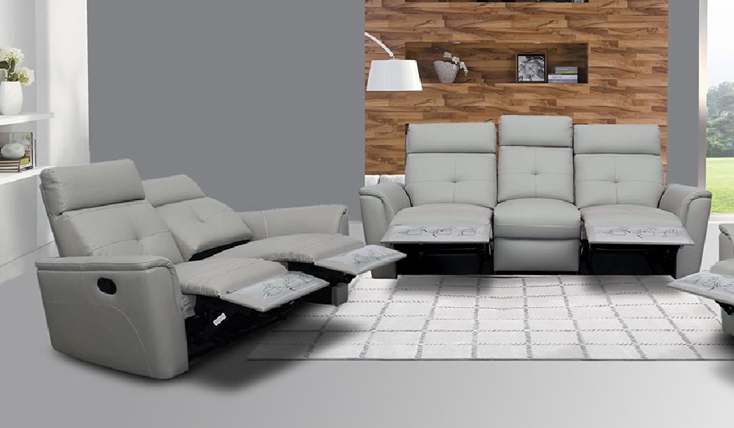 Light Grey Italian Leather Recliner Sofa Set 3 Pcs