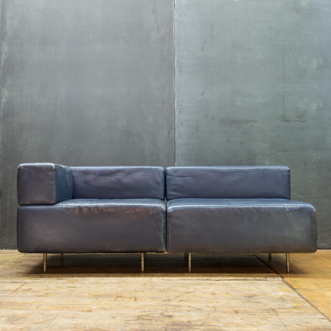 4 Pieces Harvey Probber Cubo Leather Sectional Sofa Blue Grey Mid Century By Cabinmoderndc