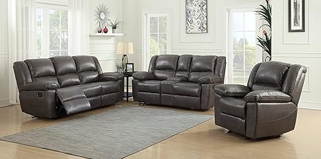 Container Furniture Direct Oregon Leather Air Upholstered Reclining Traditional Set With 83 5 Loveseat And Sofa Chair Grey