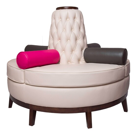Banquette Sofa With Wooden Base And Bolsters In Commercial Leather Match