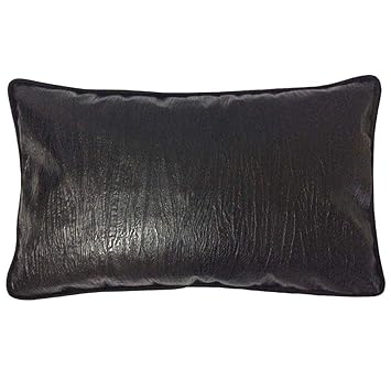 Pillowerus Black Artificial Leather Textured Striped Throw Pillow Case Slipcover 12x20 Inch Lumbar Art Deco Decorative Bolster Kidney Cushion Cover