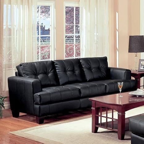 Amazon Com Deluxe Thick Upholstered Bonded Leather Sofa