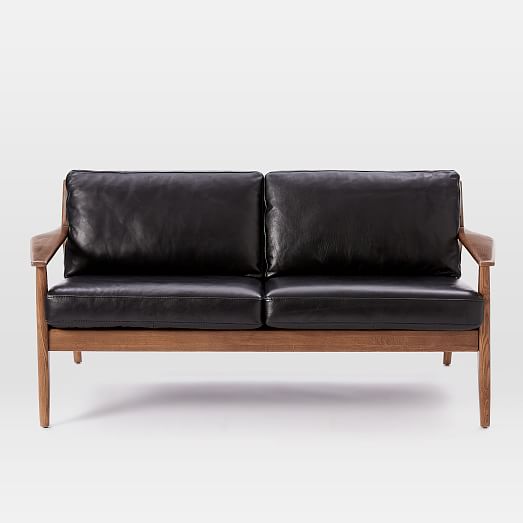 Mathias Mid Century Wood Frame Leather Loveseat 66 West Elm