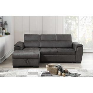 Esofastore Gray Color Air Leather Left Chaise Storage Couch