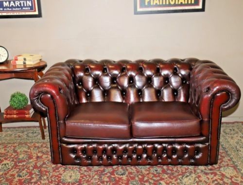 Stunning Rare Pair Of 2 Seat Chesterfield Ox Blood Leather