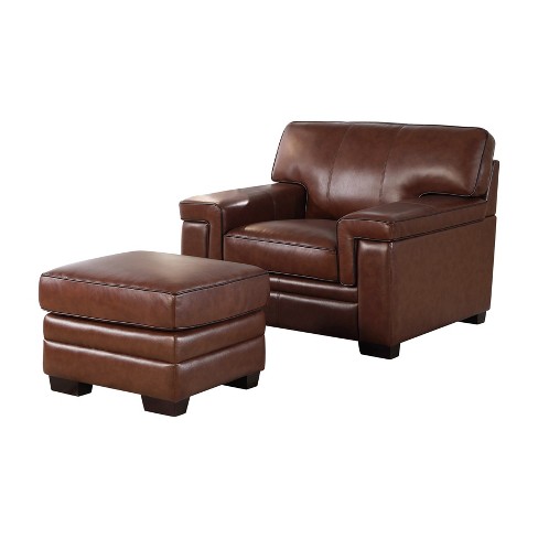 Evan Top Grain Leather Chair Ottoman Set Brown Abbyson Living