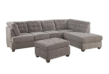 2 Piece Modern Grey Soft Micro Suede Sectional Sofa With Free Ottoman