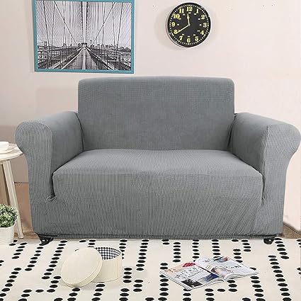 Sancua Loveseat Cover Grey Fitted Couch Cover Soft Anti Slip Stretchy Loveseat Slipcover For Furniture Protector One Piece Leather Sofa Cover For 2