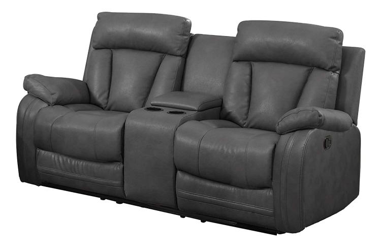 Nathaniel Home Bonded Leather Motion Loveseat 2 Reclining Seats Console Gray