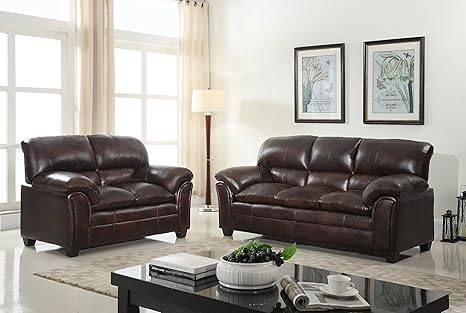 Gtu Furniture New Faux Leather Sofa And Loveseat Living Room Furniture Set Brown