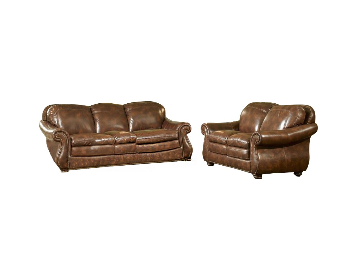 Leather Italia Pecan Duplin Sofa Loveseat Set W Options