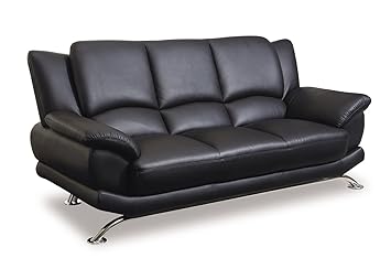 Global Furniture Rogers Collection Bonded Leather Matching Sofa Black With Chrome Legs