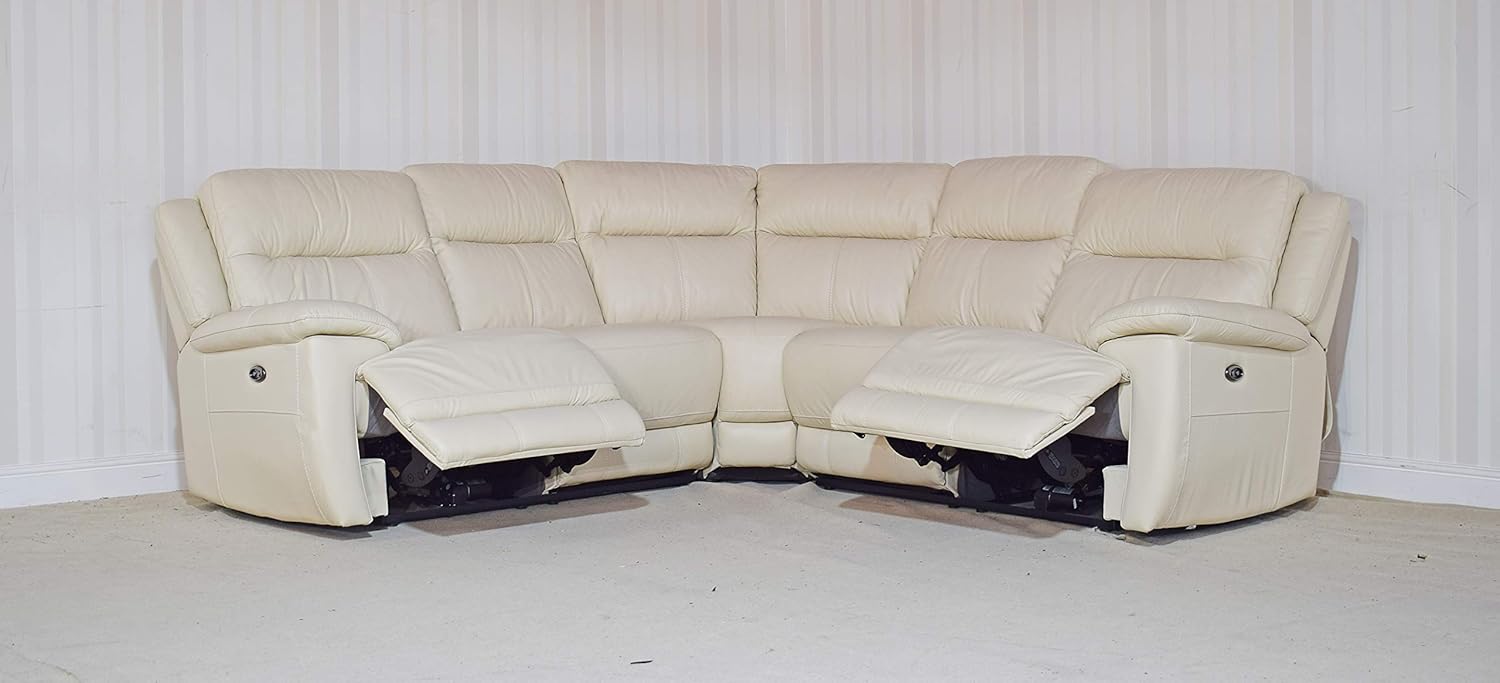 Homeflair Moreno Leather Cream 3 Piece Power Recliner Sofa