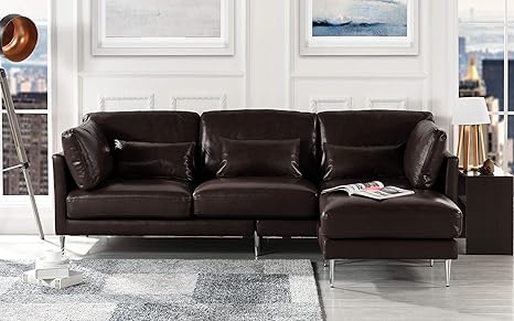 Modern Leather Sectional Sofa L Shape Couch Dark Brown