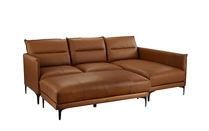 Mid Century Leather Sectional Sofa L Shape Couch With Rectangular Ottoman Camel Brown