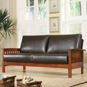 Mission Oak Faux Leather Sofa Dark Brown