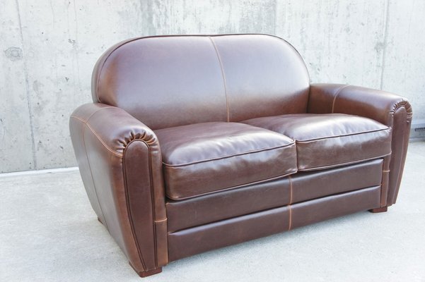 Chocolate Leather Club 2 Seat Sofa 1930s