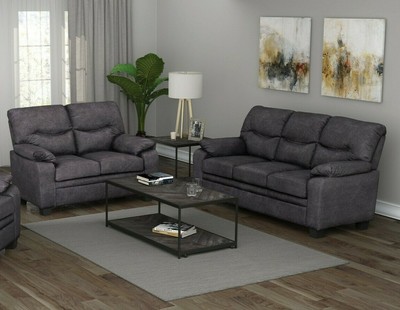 Transitional Plush 2 Piece Faux Leather Sofa Set With Couch Loveseat Charcoal 731938766705 Ebay