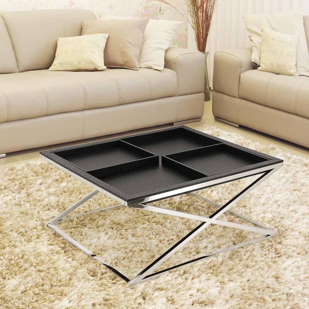 Black Ostrich Leather Cocktail Table Exl 1001 04blk Ss The