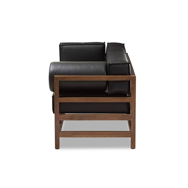 Baxton Furniture Studios Nikko Mid Century Modern Scandinavian Style Faux Leather Wooden 2 Seater Loveseat Black