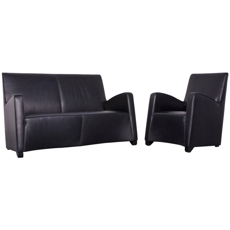 Wittmann Duke Designer Leather Sofa Armchair Set Black Two