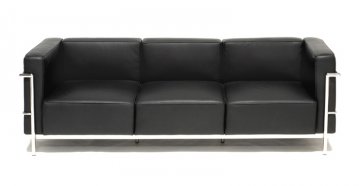 Contemporary Black Leather Sofa With Stainless Steel Frame