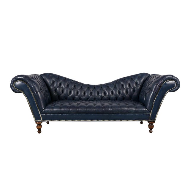 English Leather Tufted Chesterfield Style Sofa W Paw Feet