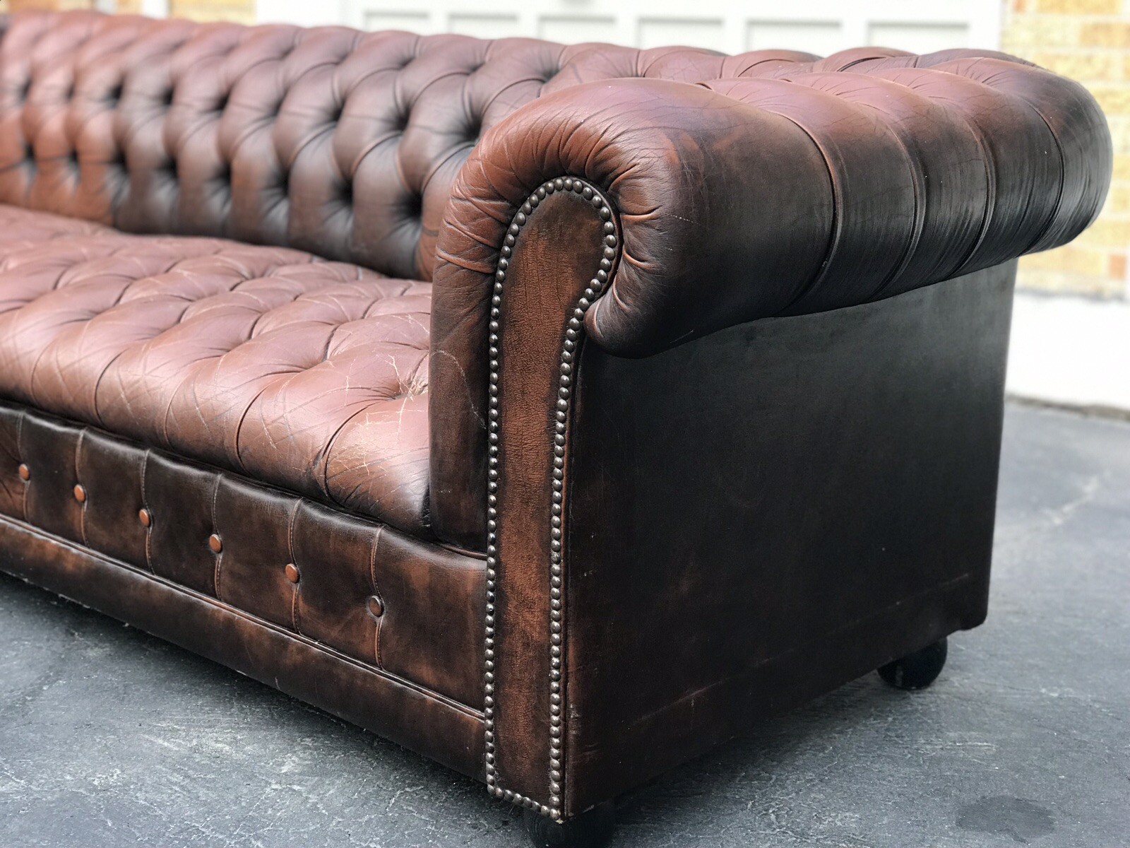 Brown Leather Tufted Sofa Couch Chesterfield Distressed