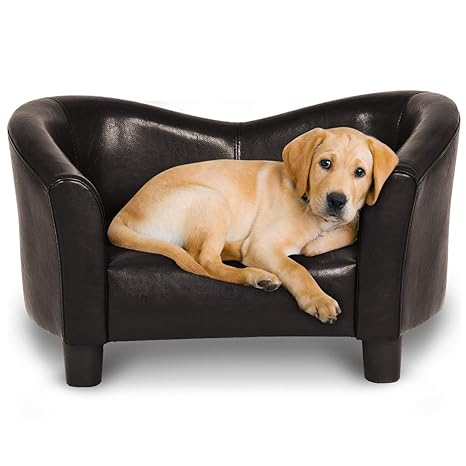 Details About Luxury Brown Pu Leather Pet Bed Dog Sofa Couch Toy Cat Chaise Seat 12198