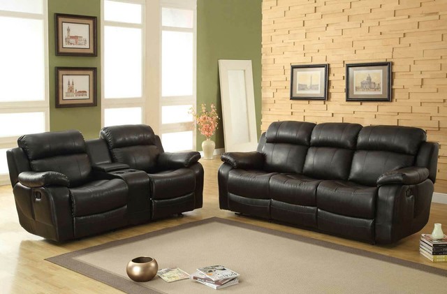 2pc Palermo Leather Recliner Sofa And Loveseat Black