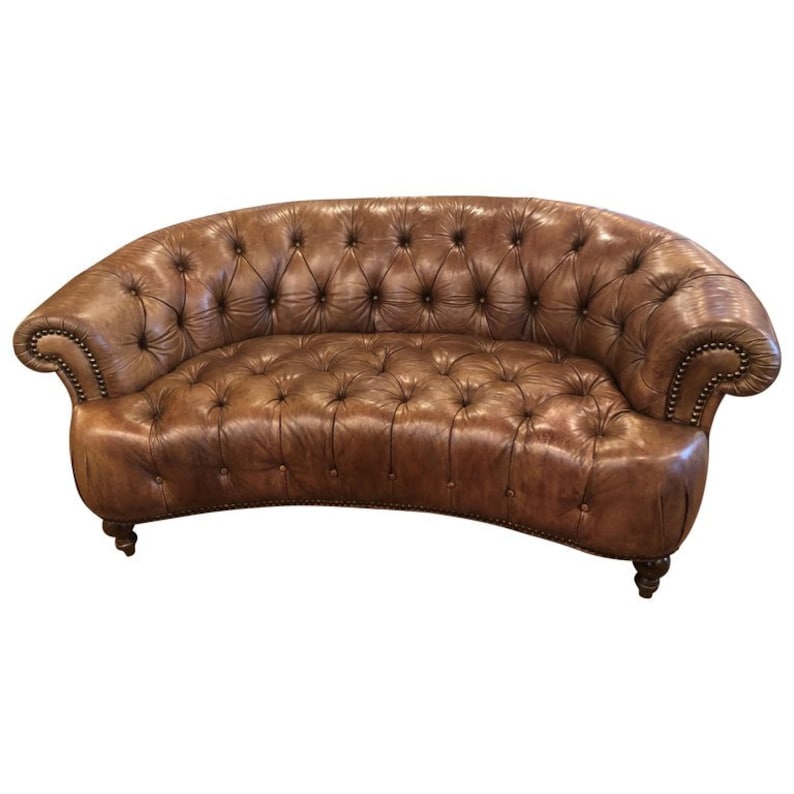 Sold Italian Curved Brown Leather Chesterfield Sofa