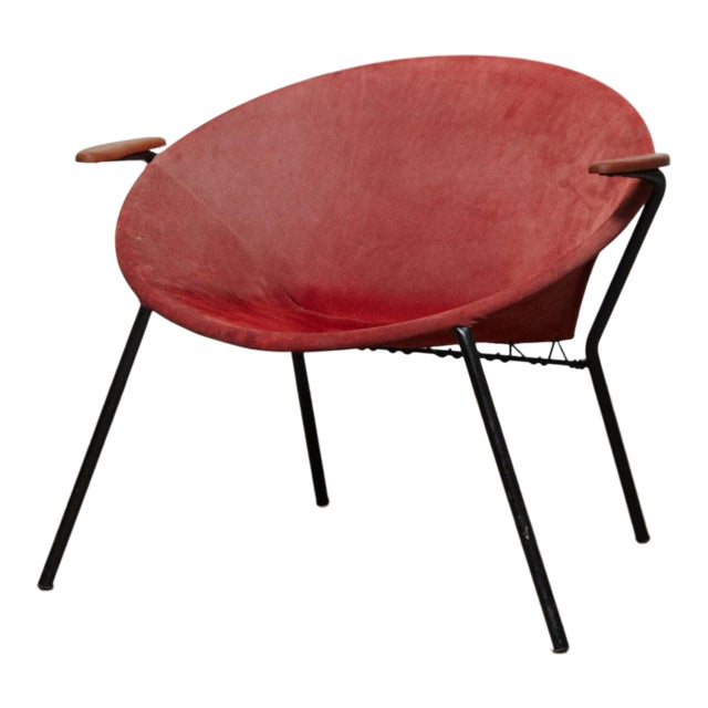 1960s Hans Olsen Mid Century Suede Sling Hoop Teak Leather Balloon Chair
