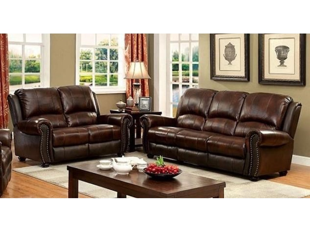 2 Pc Brown Full Leather Traditional Sofa Loveseat Set