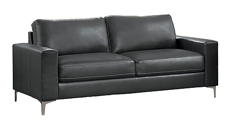 Black Bonded Leather Modern Loveseat Sofa Set W Metal Legs