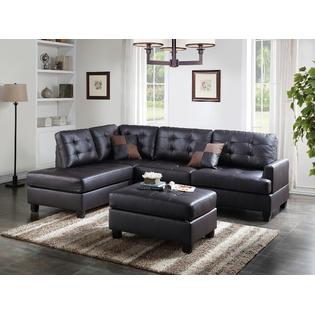 Poundex Astro Collection Contemporary Black Faux Leather Sectional Chaise Sofa Black From Houzz Martha Stewart