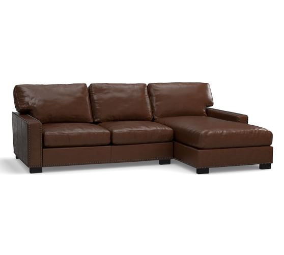 Turner Square Arm Leather Sofa With Chaise Sectional With
