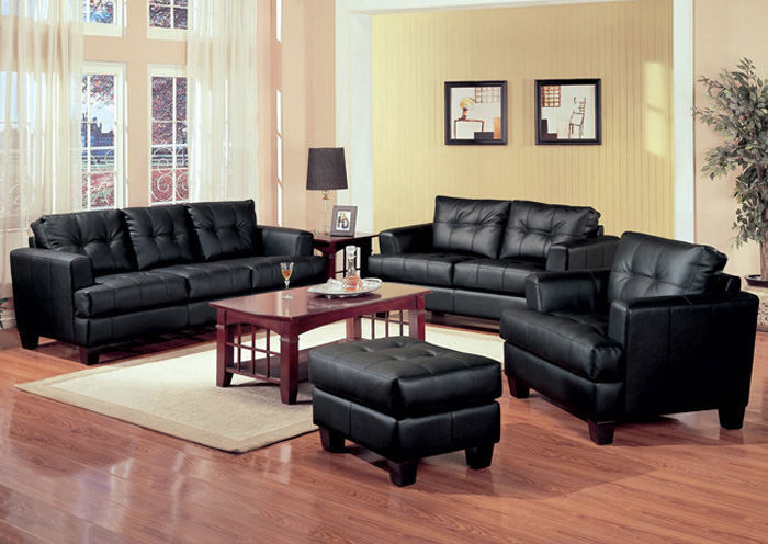 Tempo Collection Samuel Black Bonded Leather Sofa Love Seat