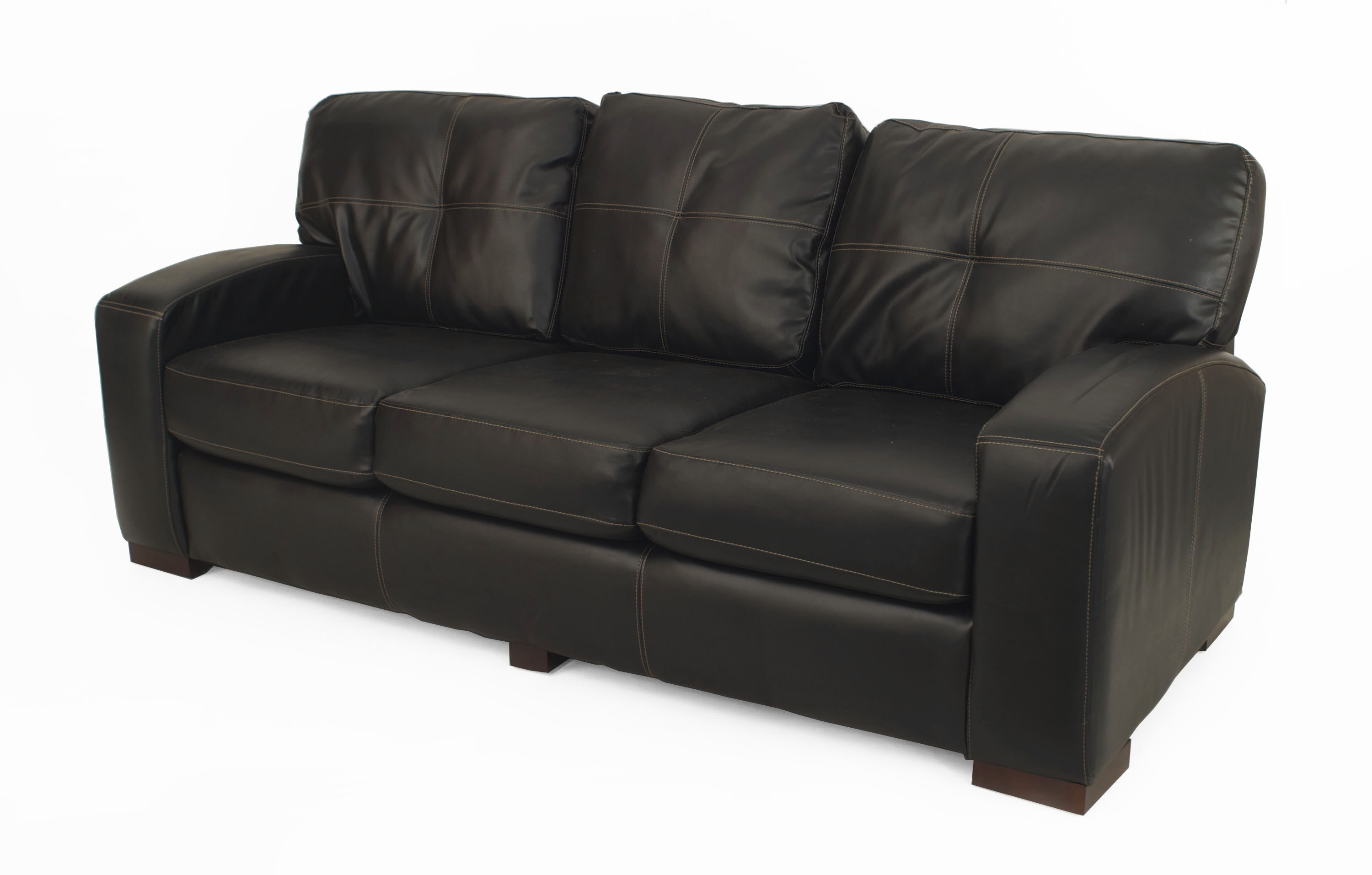 Upholstered Living Room Sofa With Single Cushion Seat And Slanted Arms In Black Leather