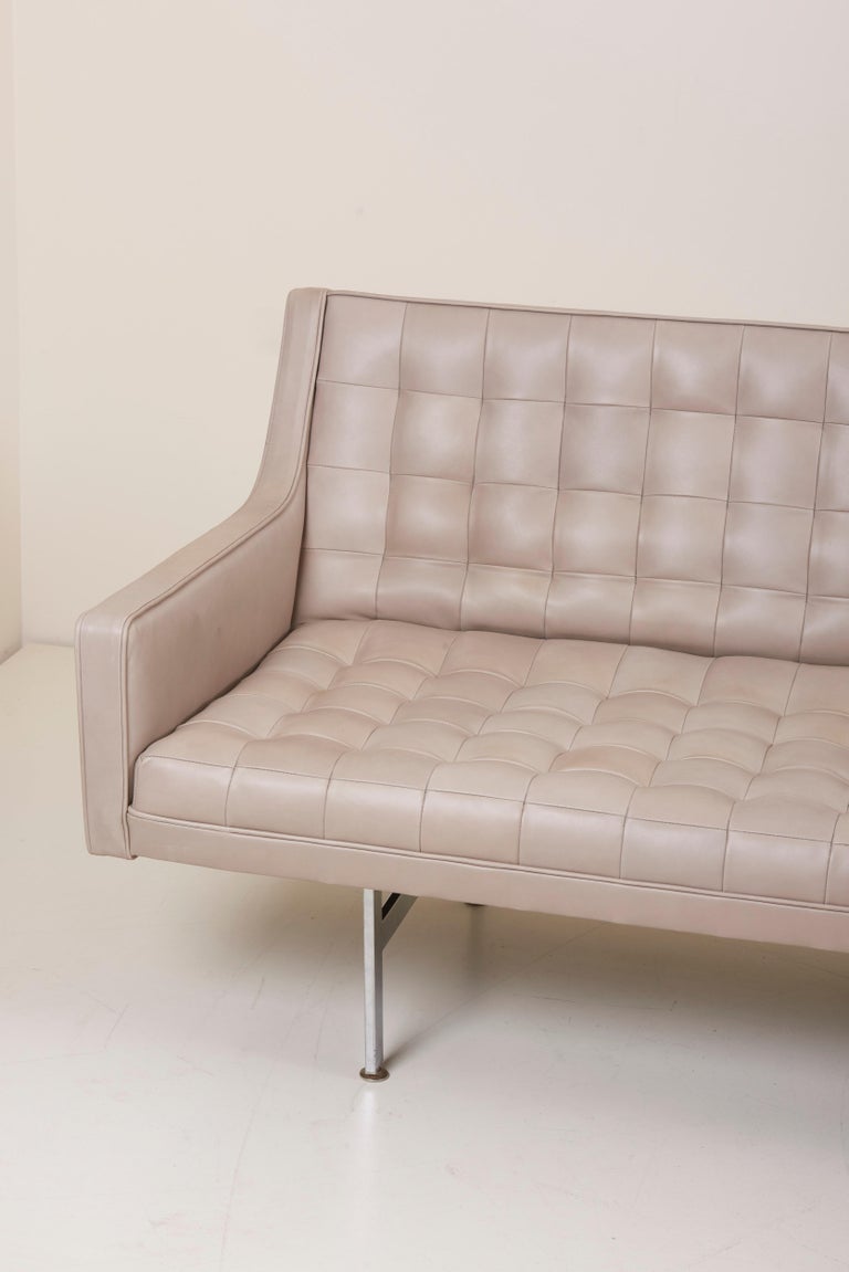 Tufted Sofa In Grey Leather By Milo Baughman For Thayer Coggin