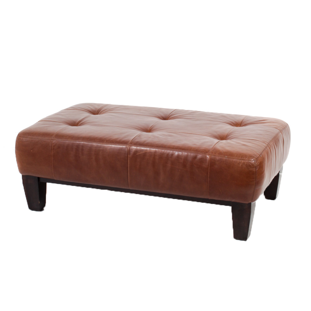 88 Off Pottery Barn Pottery Barn Brown Tufted Leather Storage Ottoman Chairs