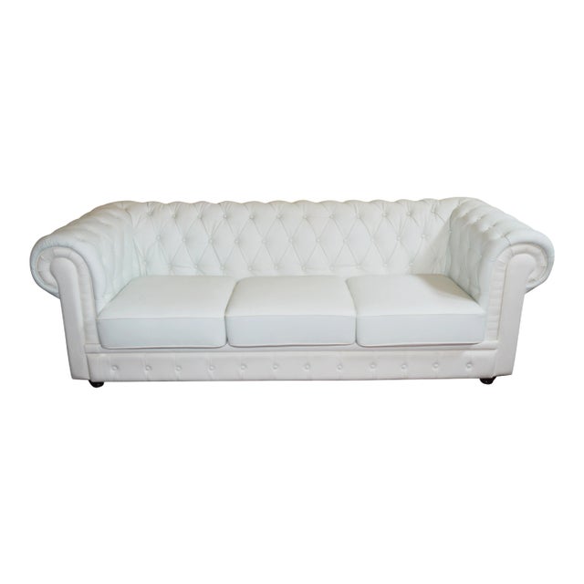 Modern Off White Leather Tufted Body Leatherette Cushions Chesterfield Style Sofa