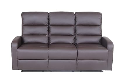 Recliner 3 Seater Sofa Brown Over Stuffed Bonded Leather Chair