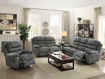 Beaumont Grey Leather 3 2 Seater Recliner Sofa Set In 2019