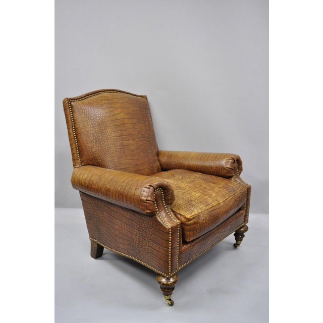 Early 21st Century Vintage Pearson English Regency Brown Leather Embossed Gator Lounge Chair Ottoman