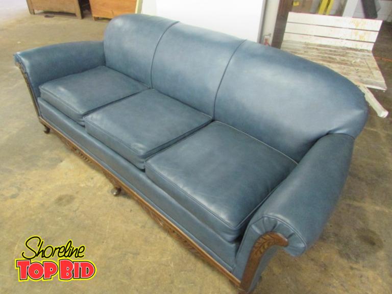 Shoreline Top Bid Mid Century Blue Leather Sofa With